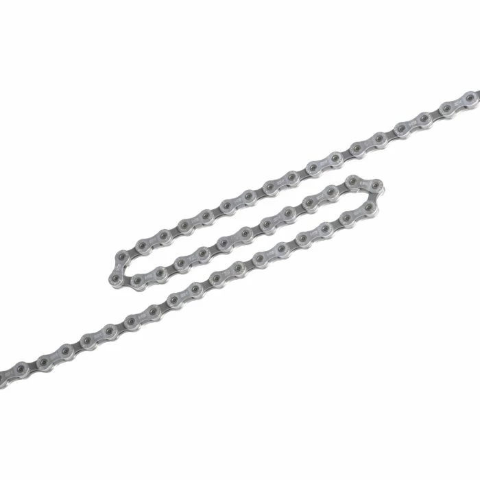 Kette fĂĽr SHIMANO ALFINE – 9-Gang – superschmal – Hyperglide (HG). HG ermöglicht weichere Schaltvorgänge in größere Ritzel. Die Kette ist mit Nietstiften verbunden.